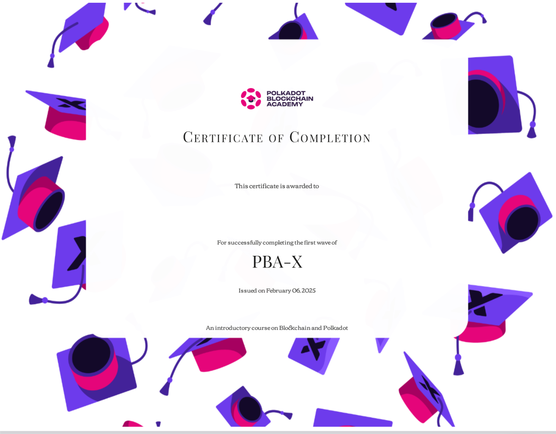 You will receive an official Polkadot Blockchain Academy certificate of completion.